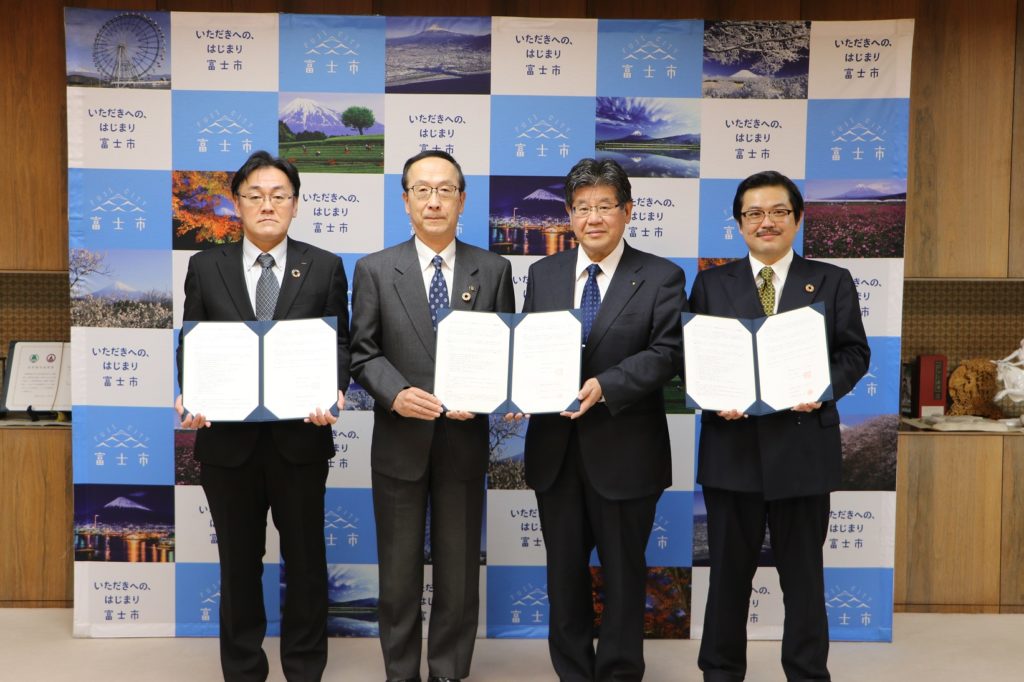 このたび、令和6年1月9日付にて弊社は、地元である富士市と『富士市ゼロカーボンシティの実現に向けたパートナーシップ協定』を締結いたしました。現在、締結者は全5社となっており、旭化成株式会社様、丸富製紙株式会社様、ジヤトコ株式会社様に続く4社目として協定を締結しました。去る2月2日、同日協定を締結された株式会社ホテイフーズコーポレーション様、ジヤトコ株式会社様と、富士市ゼロカーボンシティの実現に向けたパートナーシップ協定の締結式に参加いたしましたのでご報告いたします。