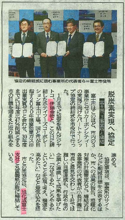 『富士市ゼロカーボンシティの実現に向けたパートナーシップ協定』について