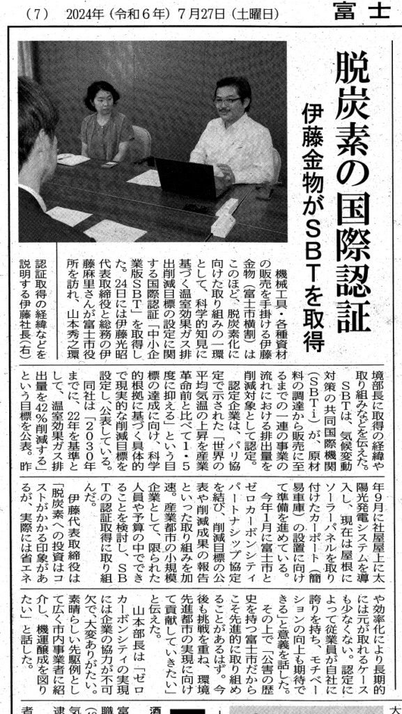 伊藤金物株式会社、SBT認定を取得 — 地域連携と環境への取り組みを強化