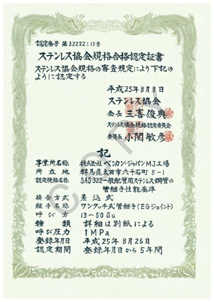 SAS規格(ステンレス協会規格)取得済みなので公共物件への提案も可能